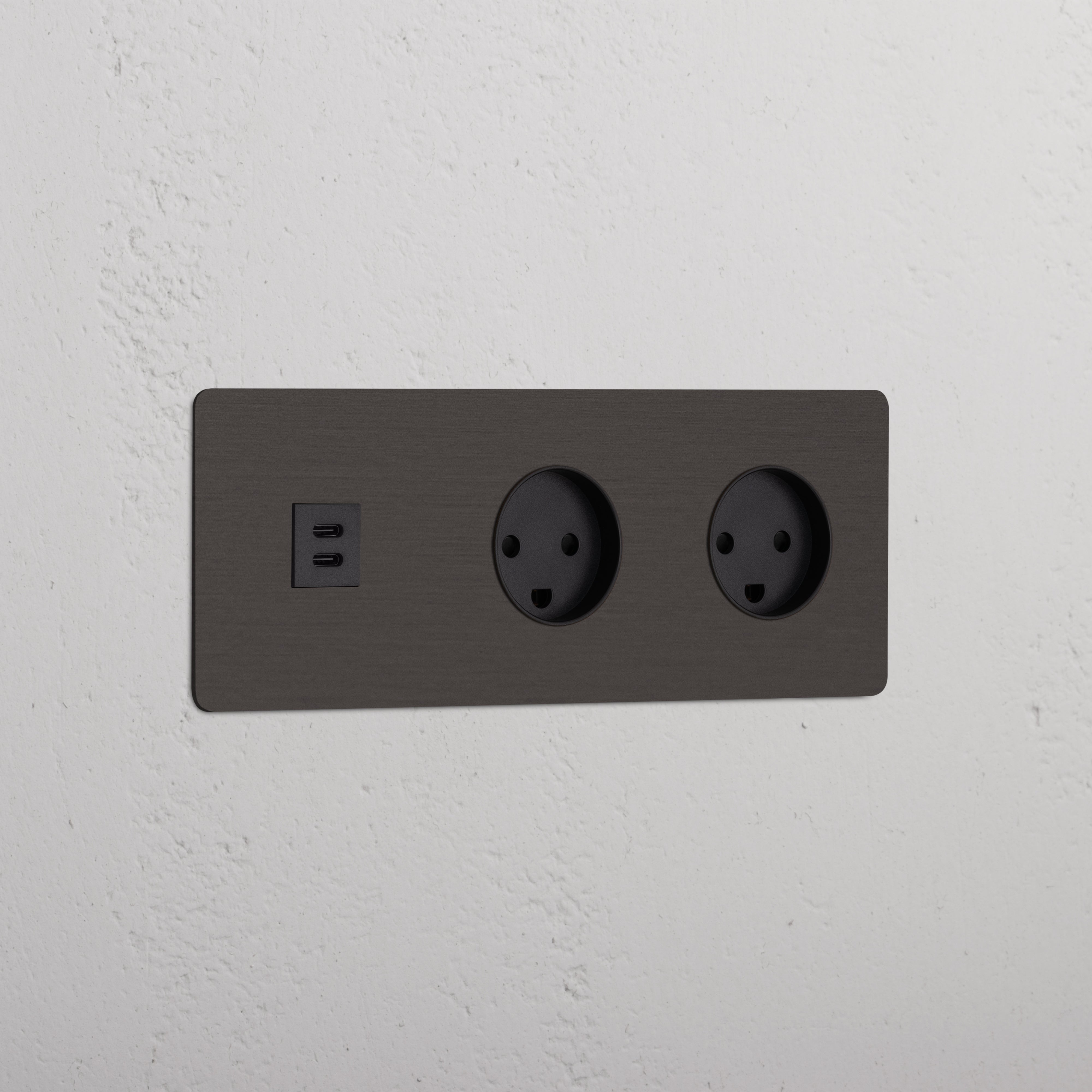 Kew USB-C 30 W & Prise Danemark Type K x2 (Plaque Triple)