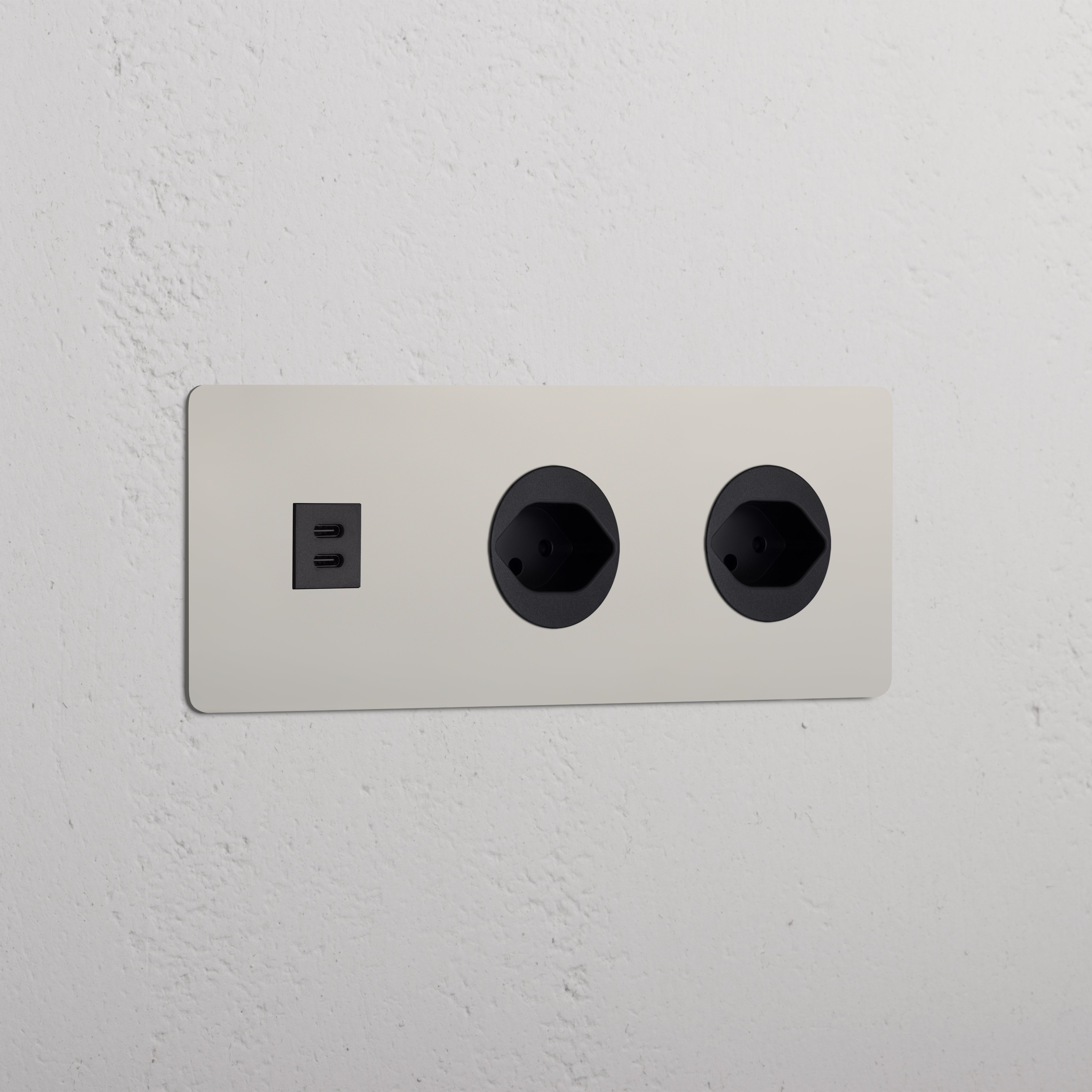 Kew USB-C 30 W & Prise Suisse Type J x2 (Plaque Triple)