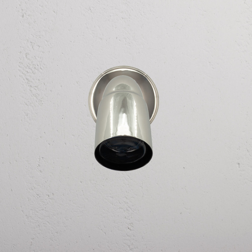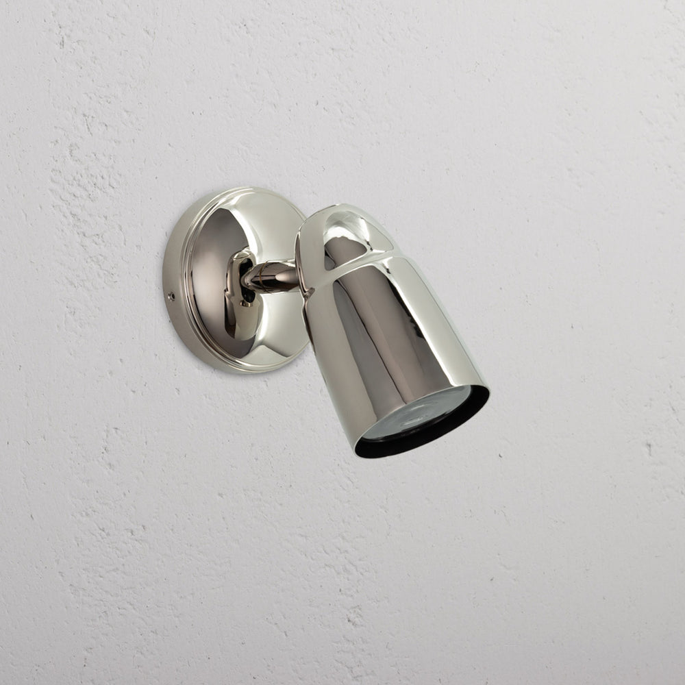 Questa versione ha una base più grande che permette di effettuare i collegamenti elettrici all'interno, invece di farli uscire dal lato della luce.Il Nichel Lucido è la nostra risposta al cromo. È leggermente più caldo, il che secondo noi lo rende più versatile, quindi puoi usarlo con palette di colori caldi o freddi.