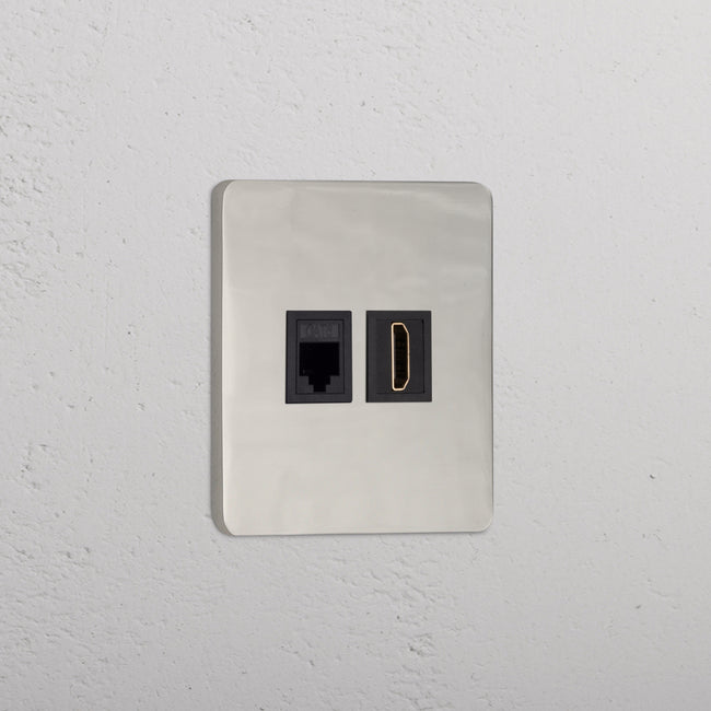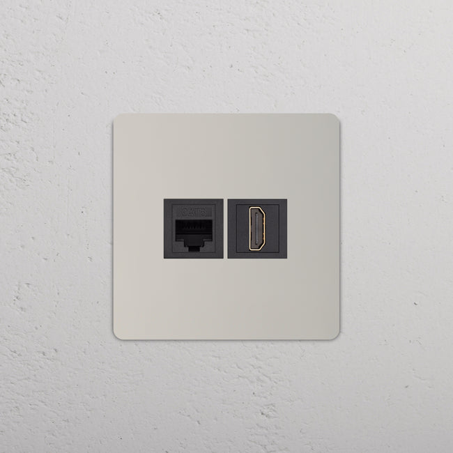 Questa presa mista singola combina una presa RJ45 e una presa HDMI su un’unica placca.