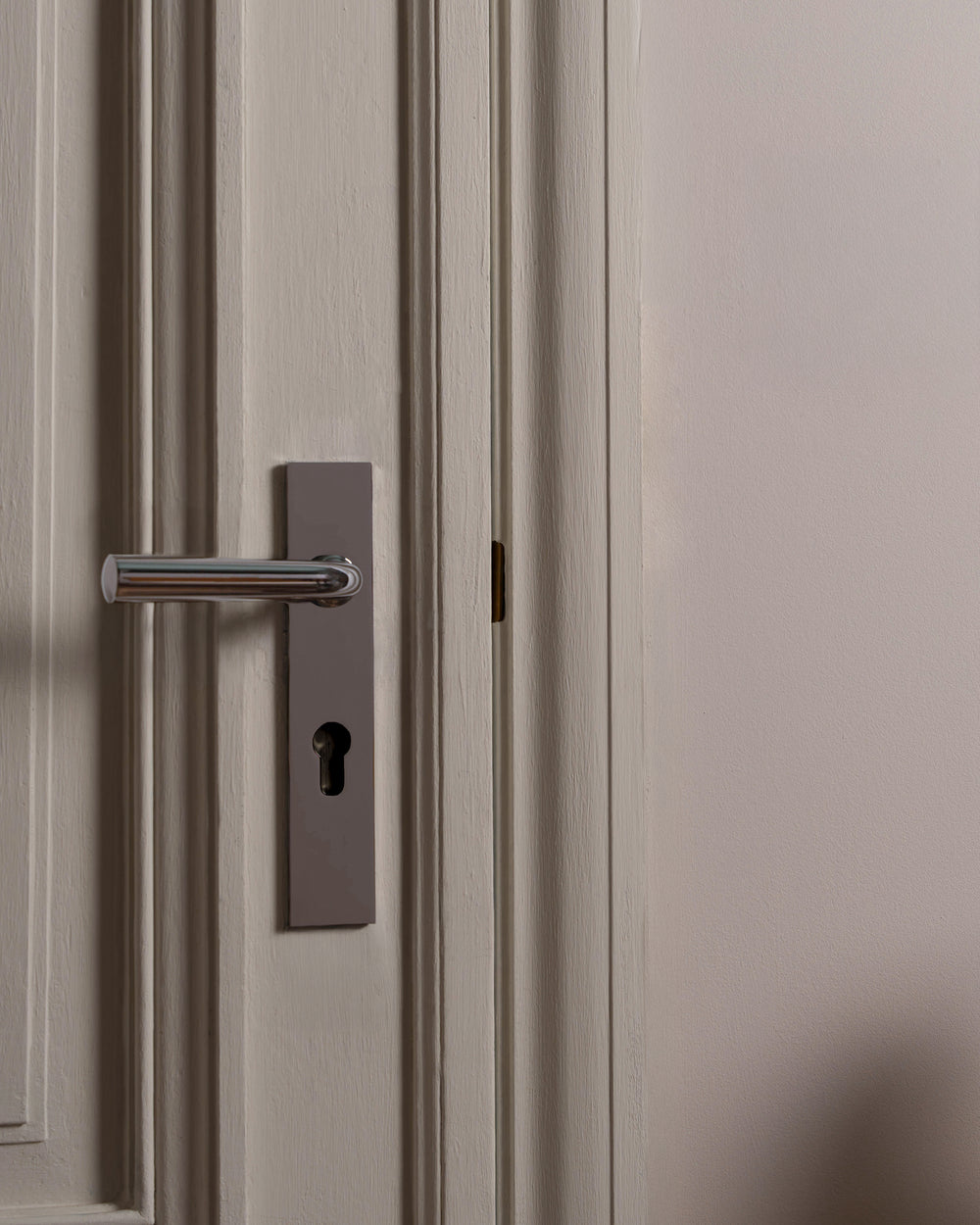 La maniglia a leva affusolata della linea Apsley ha un design semplice ed elegante, mentre la placca lunga a basso profilo le dona un carattere deciso e moderno.