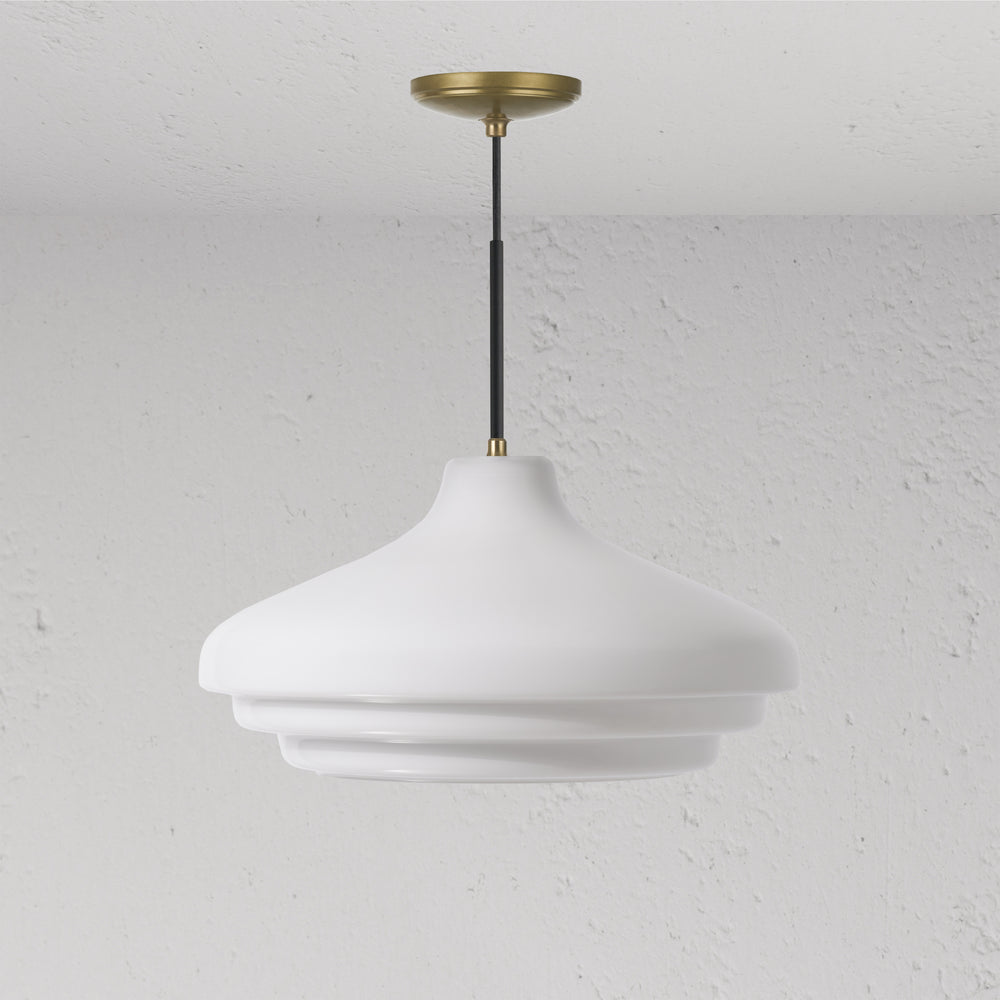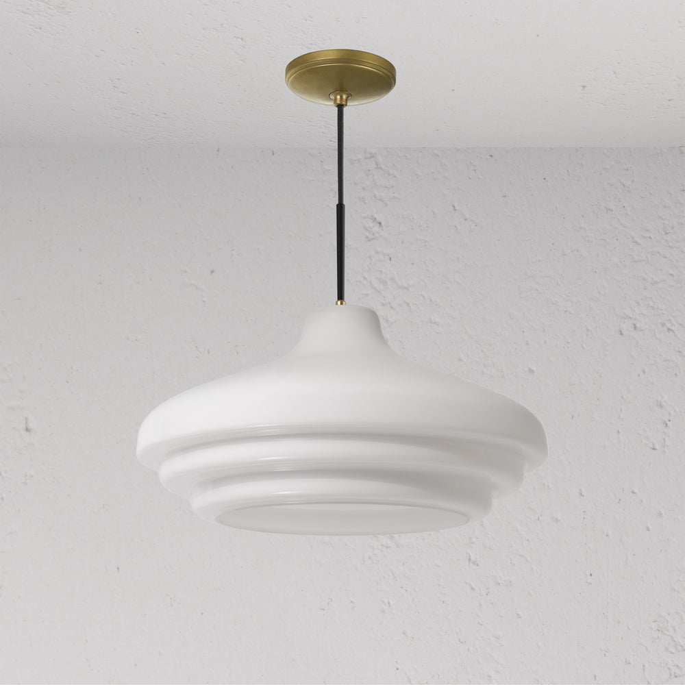 Il nostro Lampadario Brookfield ha un elegante paralume curvo a tre livelli e un portalampada in ottone massiccio. Farà una dichiarazione sottile senza oscurare gli altri elementi di design nel tuo spazio.