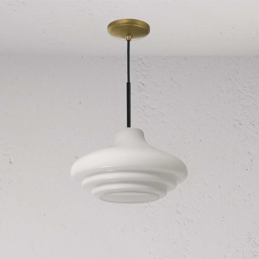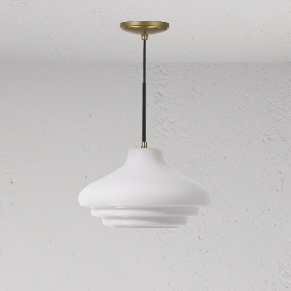 Il nostro Lampadario Brookfield ha un elegante paralume curvo a tre livelli e un portalampada in ottone massiccio. Farà una dichiarazione sottile senza oscurare gli altri elementi di design nel tuo spazio.