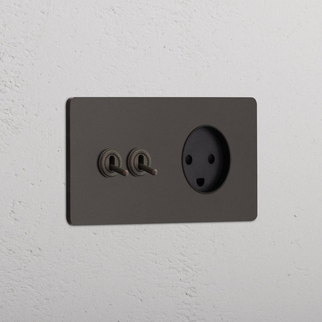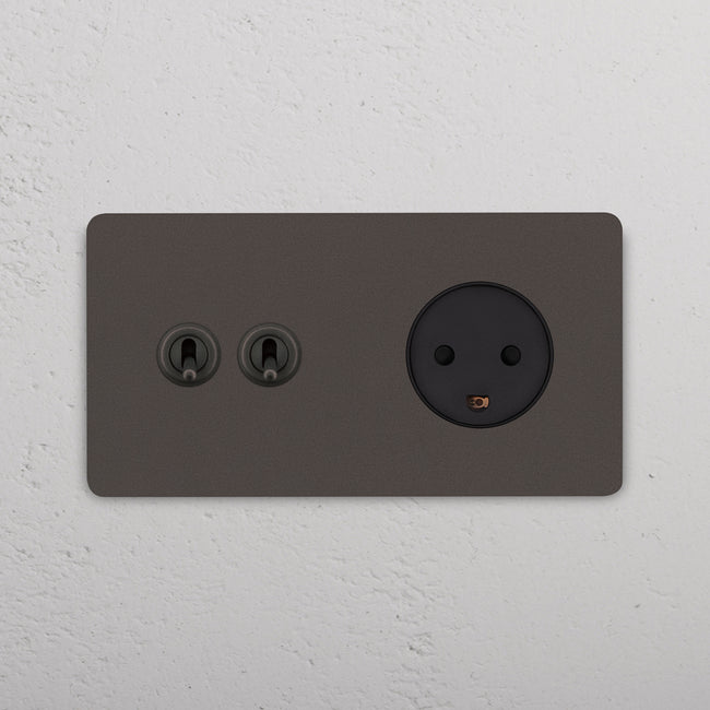 Questo modulo misto doppio combina due deviatori a levetta e una presa danese su un’unica placca.