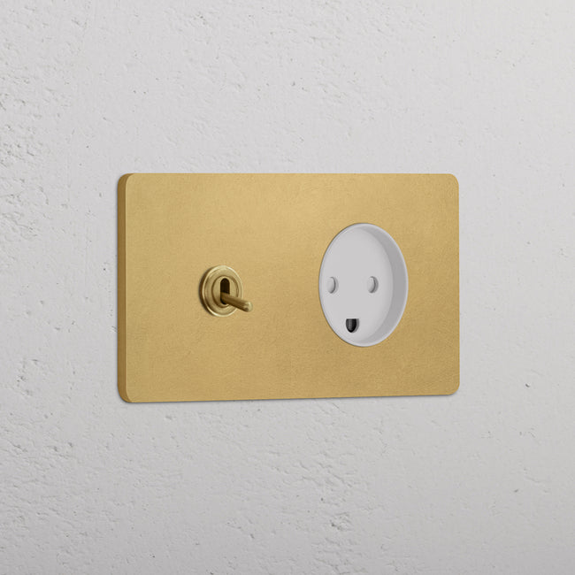 Questo modulo misto doppio combina un deviatore a levetta e una presa danese su un’unica placca.