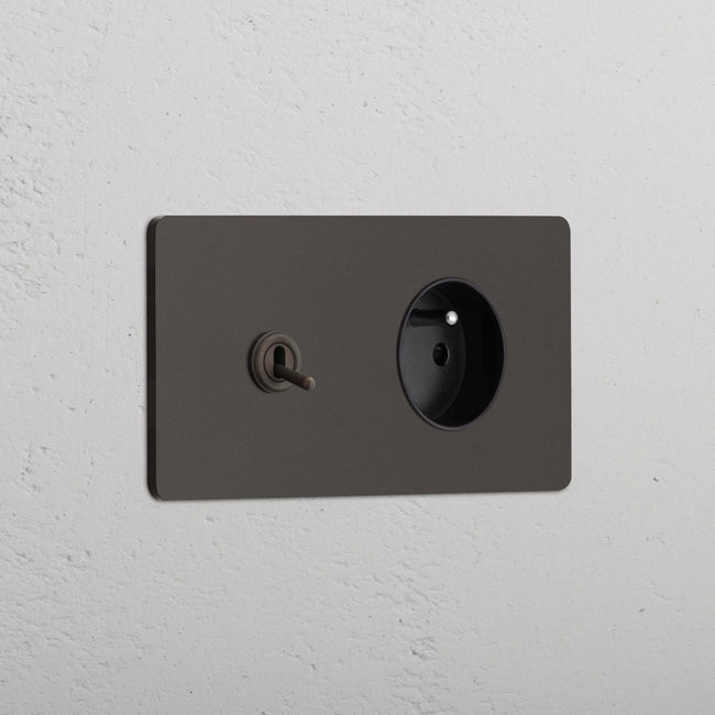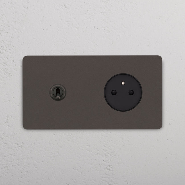 Questo modulo misto doppio combina un deviatore a levetta e una presa francese/belga su un’unica placca.