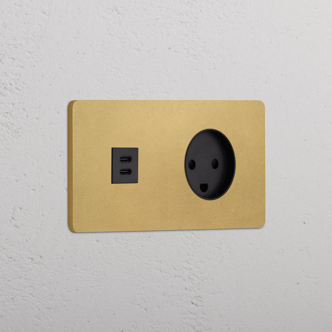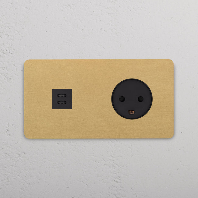 Questa presa mista doppia combina una presa USB-C e una presa danese su un’unica placca.