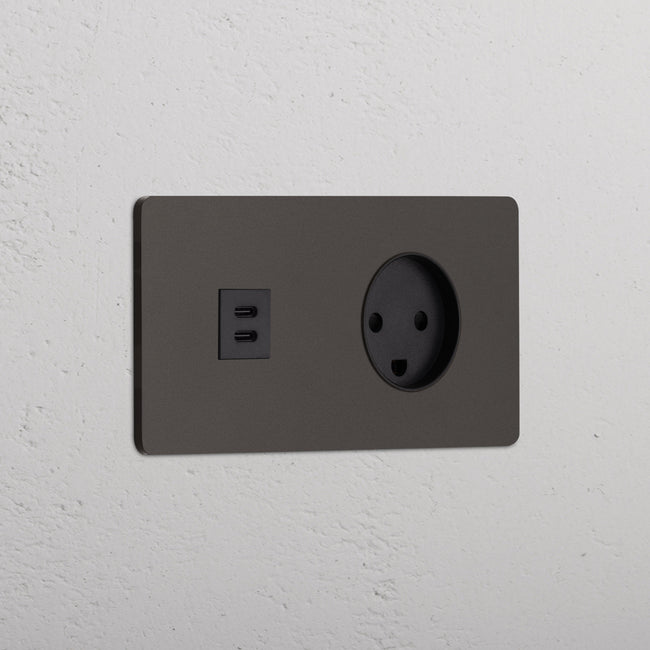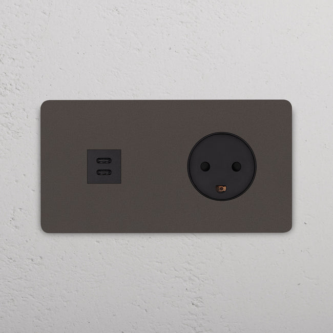 Questa presa mista doppia combina una presa USB-C e una presa danese su un’unica placca.