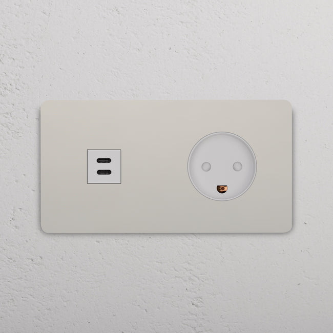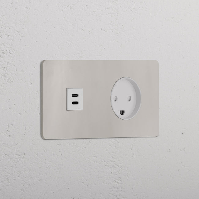 Questa presa mista doppia combina una presa USB-C e una presa danese su un’unica placca.