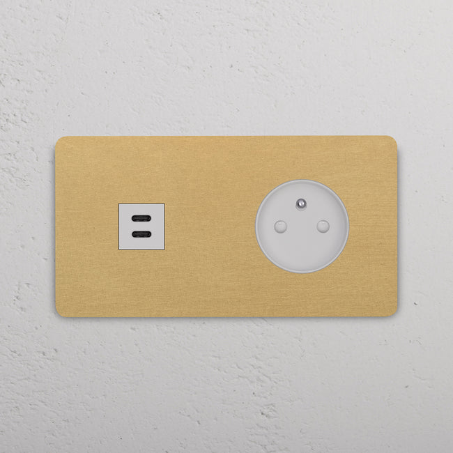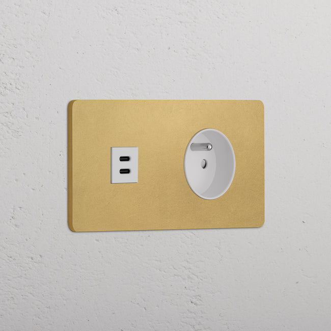Questa presa mista doppia combina una presa USB-C e una presa francese/belga su un’unica placca.