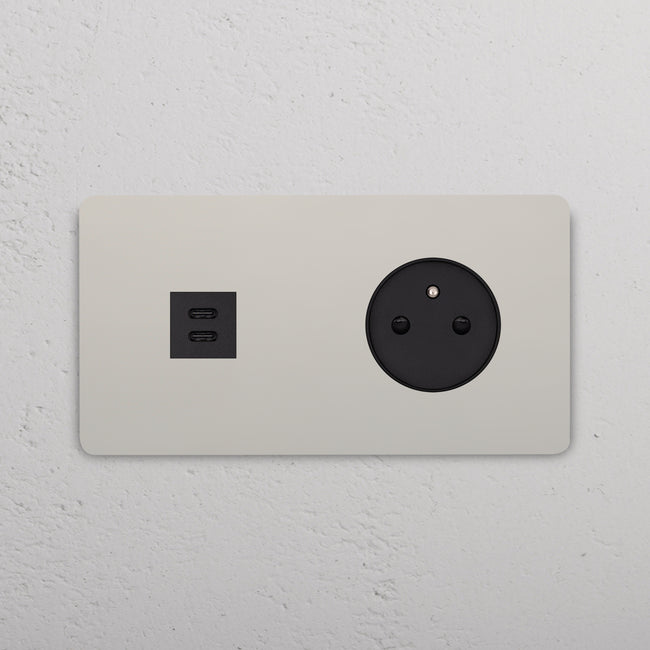 Questa presa mista doppia combina una presa USB-C e una presa francese/belga su un’unica placca.
