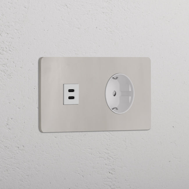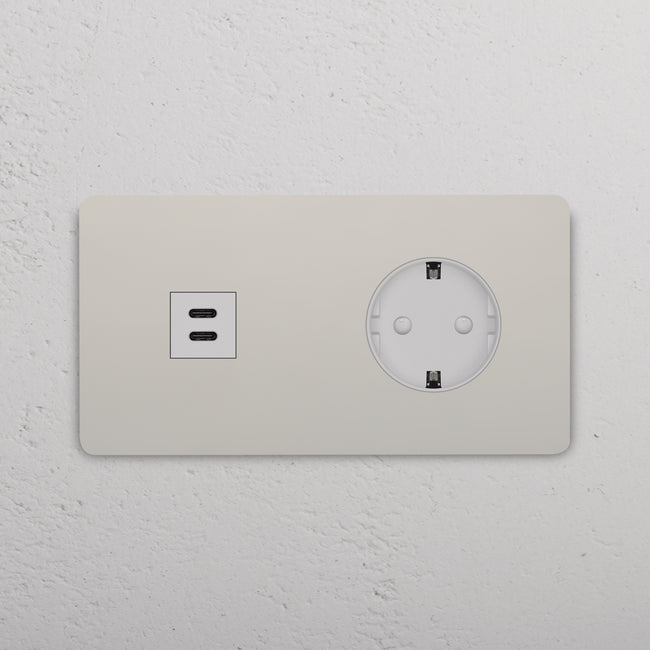 Questa presa mista doppia combina una presa USB-C e una presa Schuko su un’unica placca.