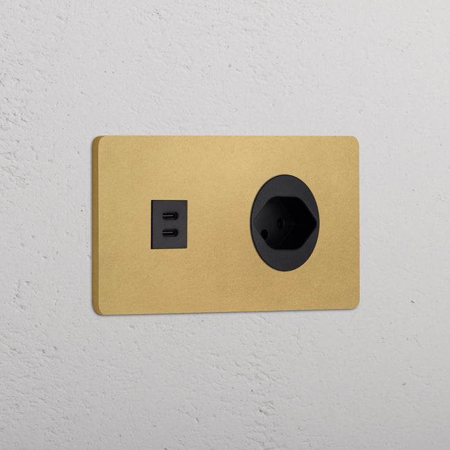 Questa presa mista doppia combina una presa USB-C e una presa svizzera su un’unica placca.