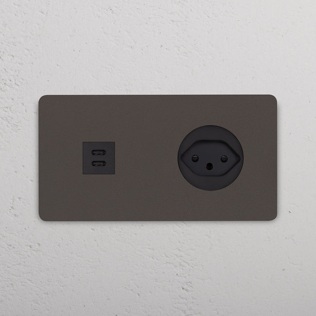 Questa presa mista doppia combina una presa USB-C e una presa svizzera su un’unica placca.