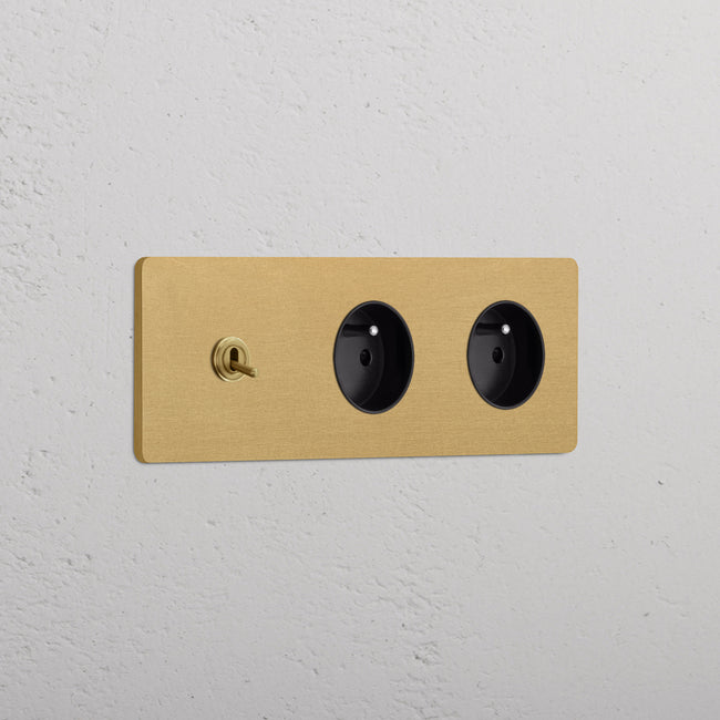 Questo modulo misto triplo combina un deviatore a levetta e due prese francesi/belghe su un’unica placca.