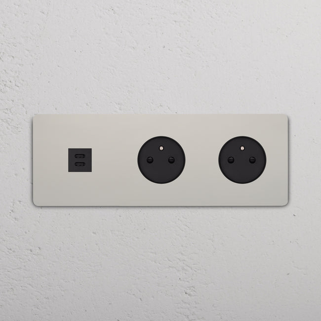 Questa presa mista tripla combina una presa USB-C e due prese francesi/belghe su un’unica placca.