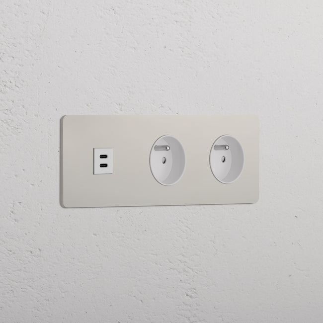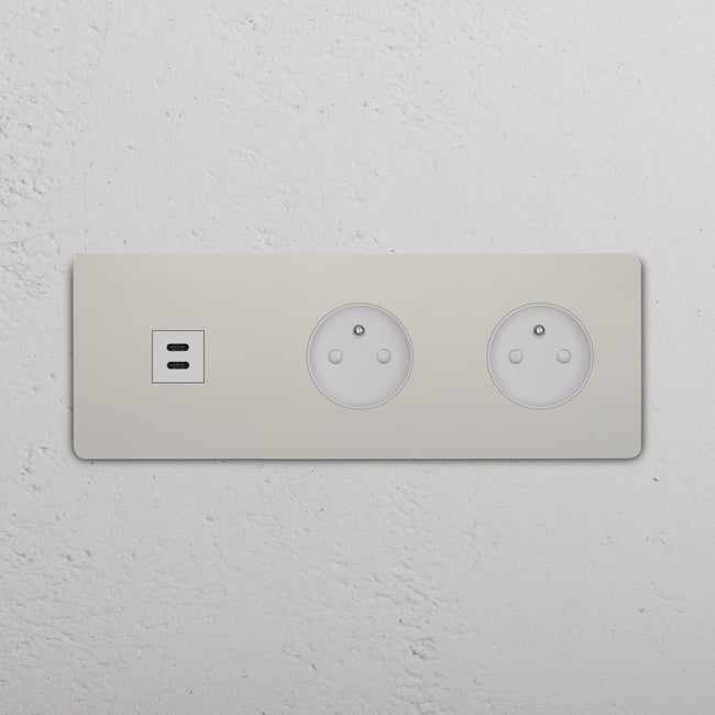 Questa presa mista tripla combina una presa USB-C e due prese francesi/belghe su un’unica placca.