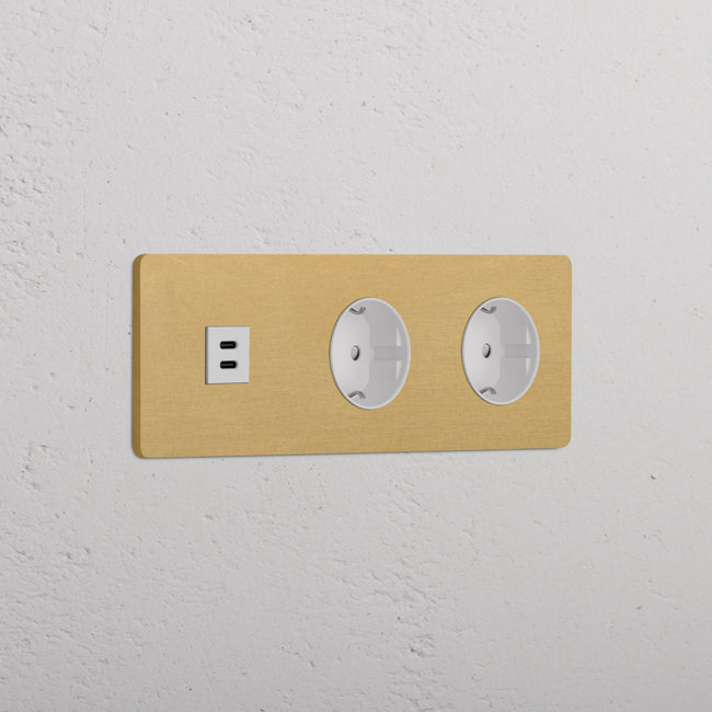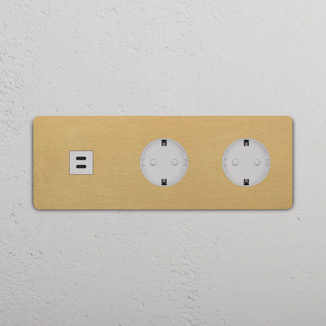 Questa presa mista tripla combina una presa USB-C e due prese Schuko su un’unica placca.