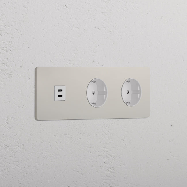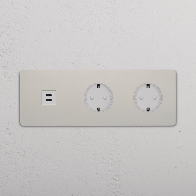 Questa presa mista tripla combina una presa USB-C e due prese Schuko su un’unica placca.