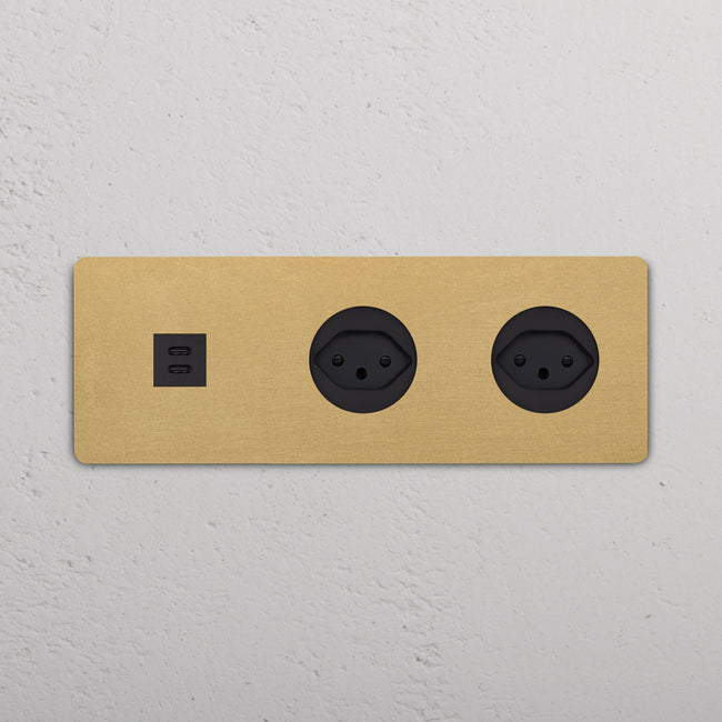 Questa presa mista tripla combina una presa USB-C e due prese svizzere su un’unica placca.