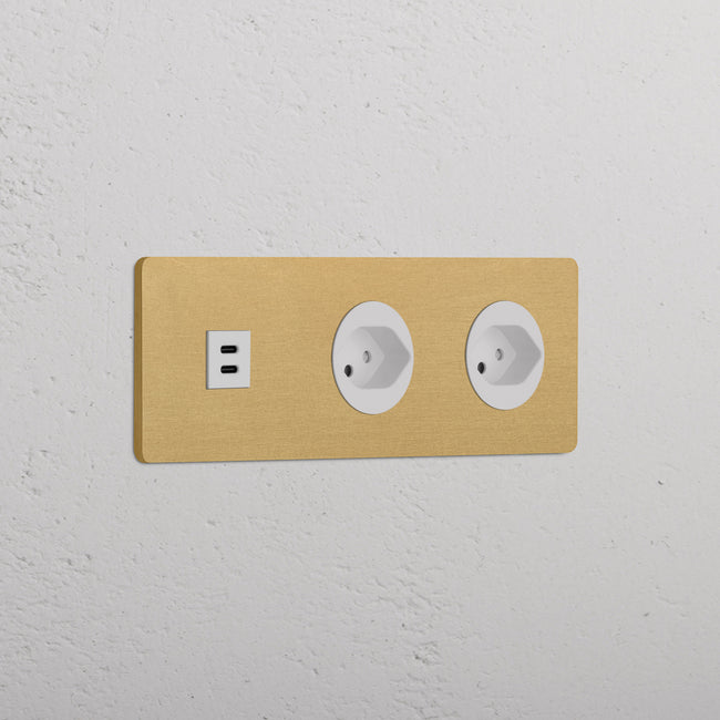 Questa presa mista tripla combina una presa USB-C e due prese svizzere su un’unica placca.