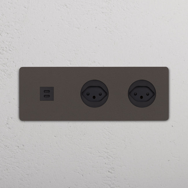 Questa presa mista tripla combina una presa USB-C e due prese svizzere su un’unica placca.