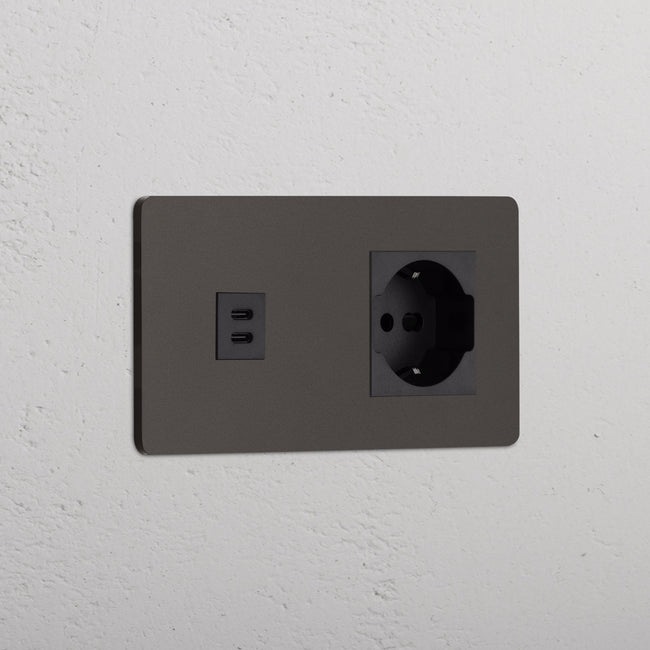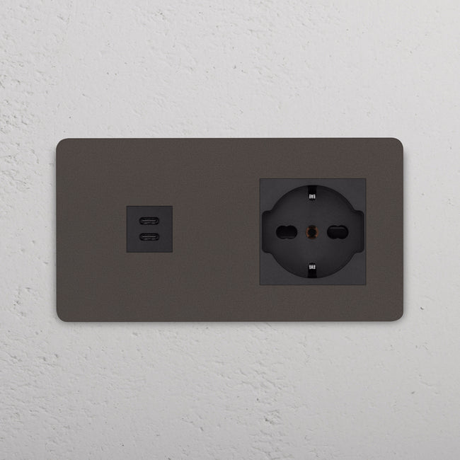 Questa presa mista doppia combina una presa USB-C e una presa Schuko/Bipasso su un’unica placca.