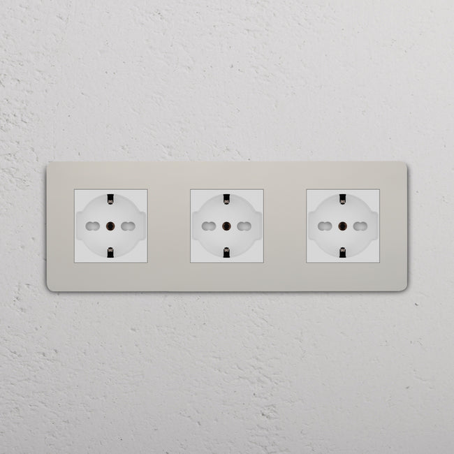 La nostra presa Schuko/Bipasso tripla 3x è progettata per essere il più elegante e intemporale possibile in qualsiasi ambiente.