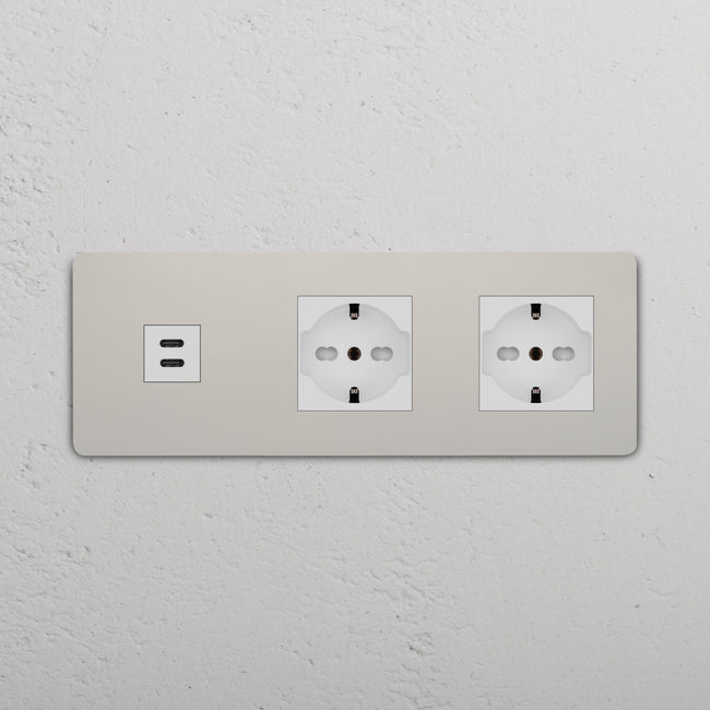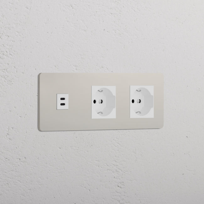 Questa presa mista tripla combina una presa USB-C e due prese Schuko/Bipasso su un’unica placca.
