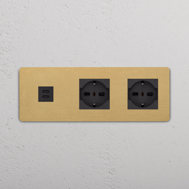 Questa presa mista tripla combina una presa USB-C e due prese Schuko/Bipasso su un’unica placca.