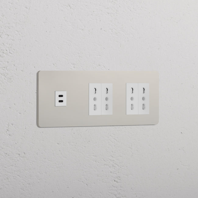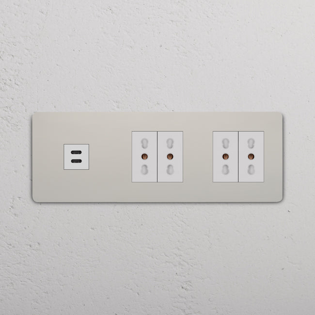 Questa presa mista tripla combina una presa USB-C e due prese Bipasso su un’unica placca.
