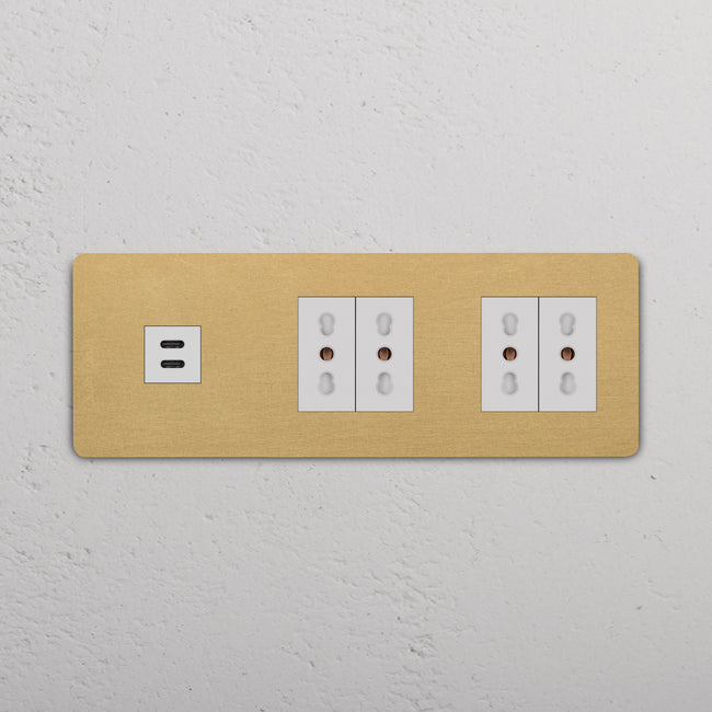 Questa presa mista tripla combina una presa USB-C e due prese Bipasso su un’unica placca.