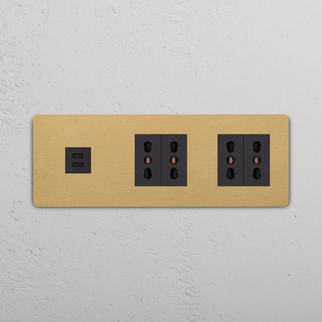 Questa presa mista tripla combina una presa USB-C e due prese Bipasso su un’unica placca.