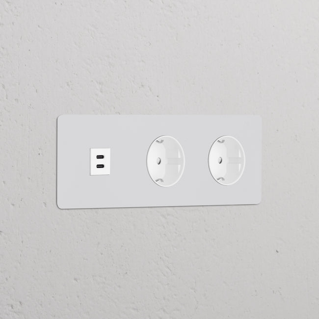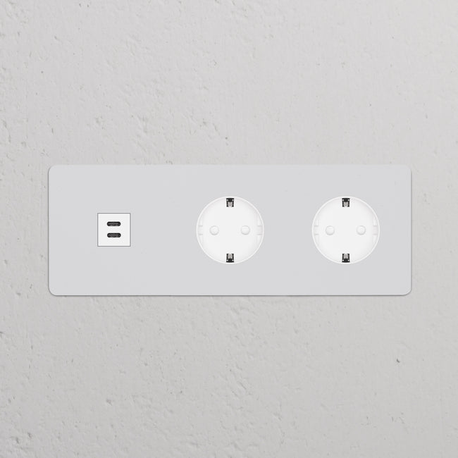 Questa presa mista tripla combina una presa USB-C e due prese Schuko su un’unica placca.