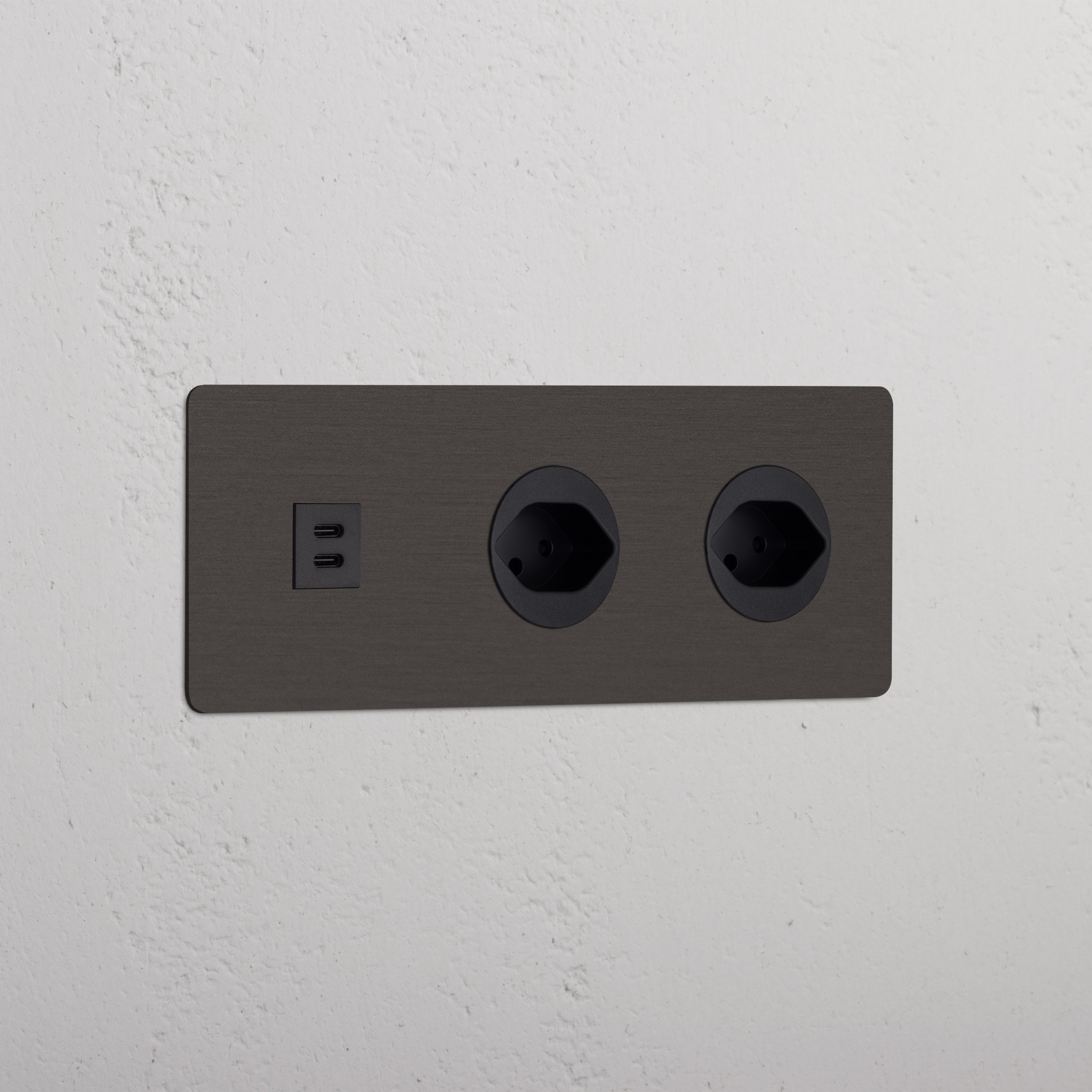 Questa presa mista tripla combina una presa USB-C e due prese svizzere su un’unica placca.
