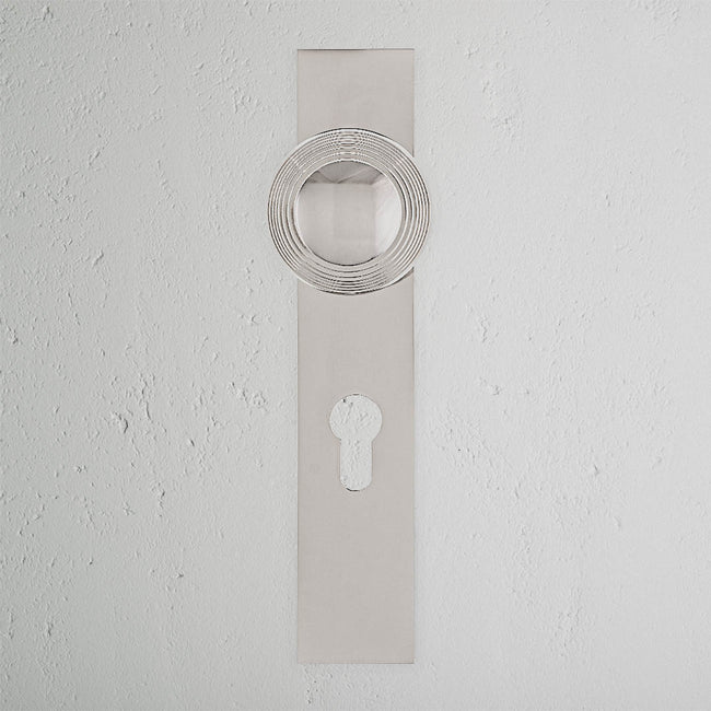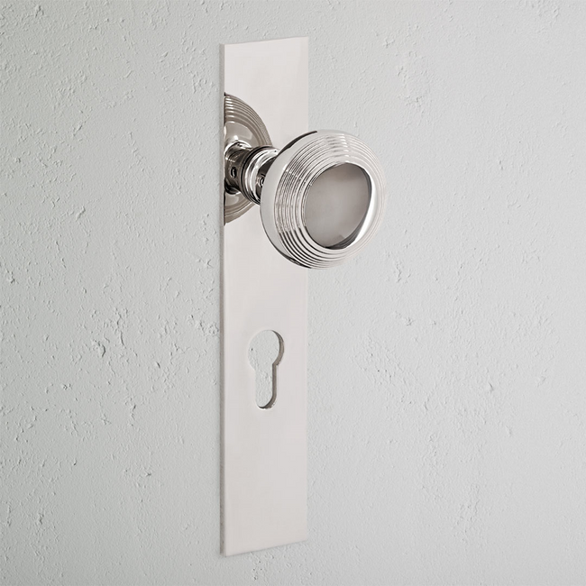 Abbiamo semplificato il design con un pomello più piatto e, in questo caso, una placca lunga a basso profilo compatibile con serrature a cilindro europeo. Perfetto sia per ristrutturazioni classiche che per abitazioni moderne con dettagli tradizionali.