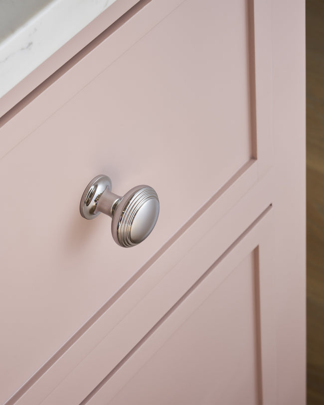 Onze tijdloze en tactiele Barlow-knop werkt goed op keukenkasten, garderobekasten en ander schrijnwerk en meubilair.