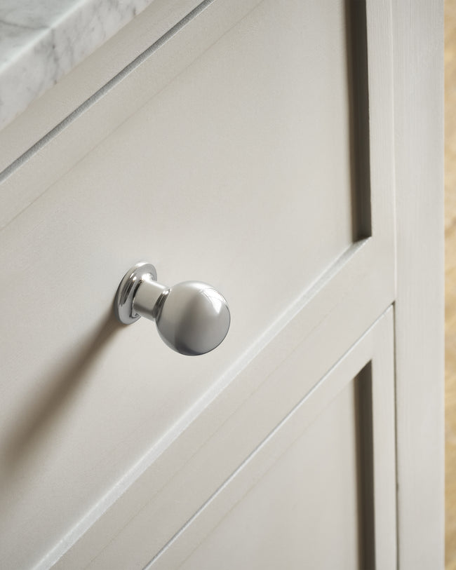 Bayswater is onze eenvoudige, stevige knop die heerlijk zacht aanvoelt en zowel bij klassieke als hedendaagse meubels en kasten past.