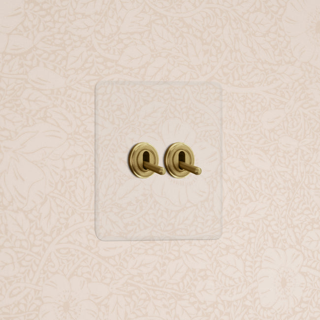 We hebben onze doorzichtige collectie gemaakt van polycarbonaat, dit is flexibeler en duurzamer dan het gebruikelijke acryl. De tuimelschakelaars zijn gemaakt van massief messing in onze antiek messing afwerking.