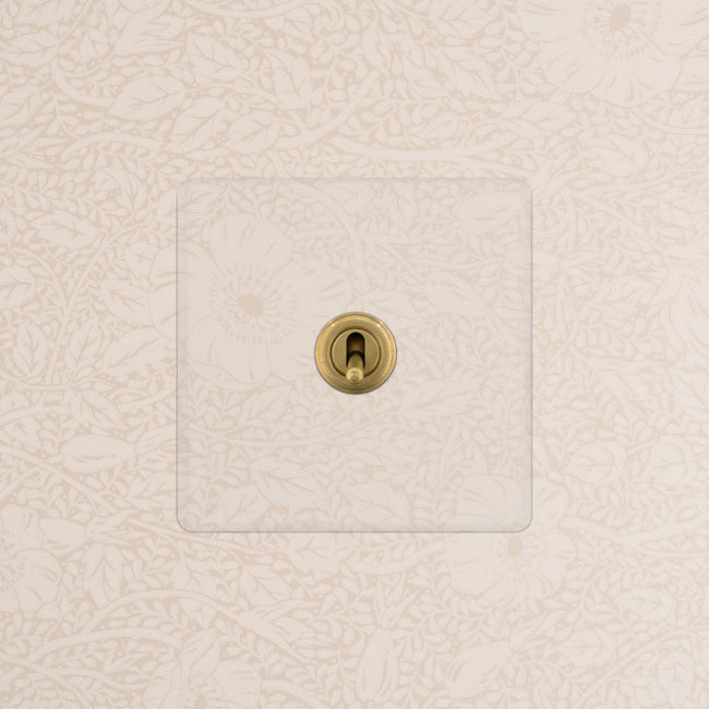 We hebben onze doorzichtige collectie gemaakt van polycarbonaat, dit is flexibeler en duurzamer dan gebruikelijk acryl. De tuimelschakelaar is gemaakt van massief messing in onze antiek messing afwerking.
