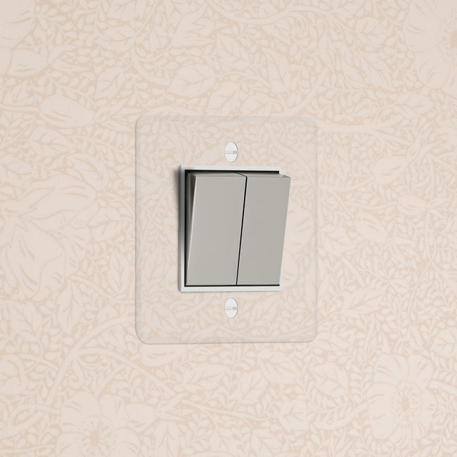 Onze doorzichtige schakelaars en stopcontacten worden geleverd met achterpapier wat je kunt beschilderen of als behangsjabloon kunt gebruiken.