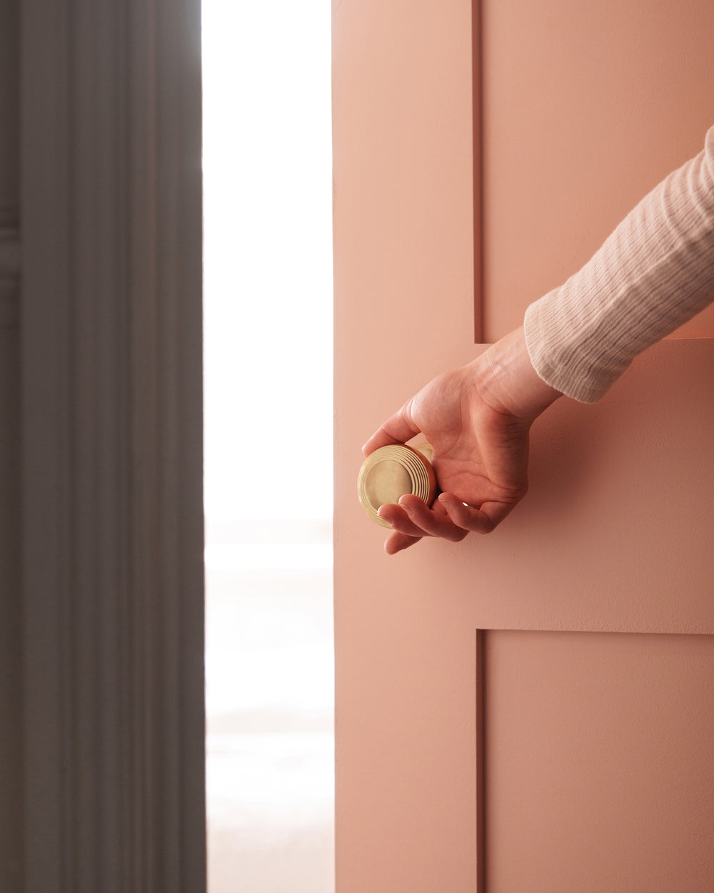 We hebben alles gestroomlijnd, met een plattere knop en een 'schroefloze' rozet zonder profiel (de schroeven zijn binnenin verborgen). Deze knop doet het goed in historische huizen met een eigentijds tintje of brengt een traditioneel tintje in nieuwbouw.