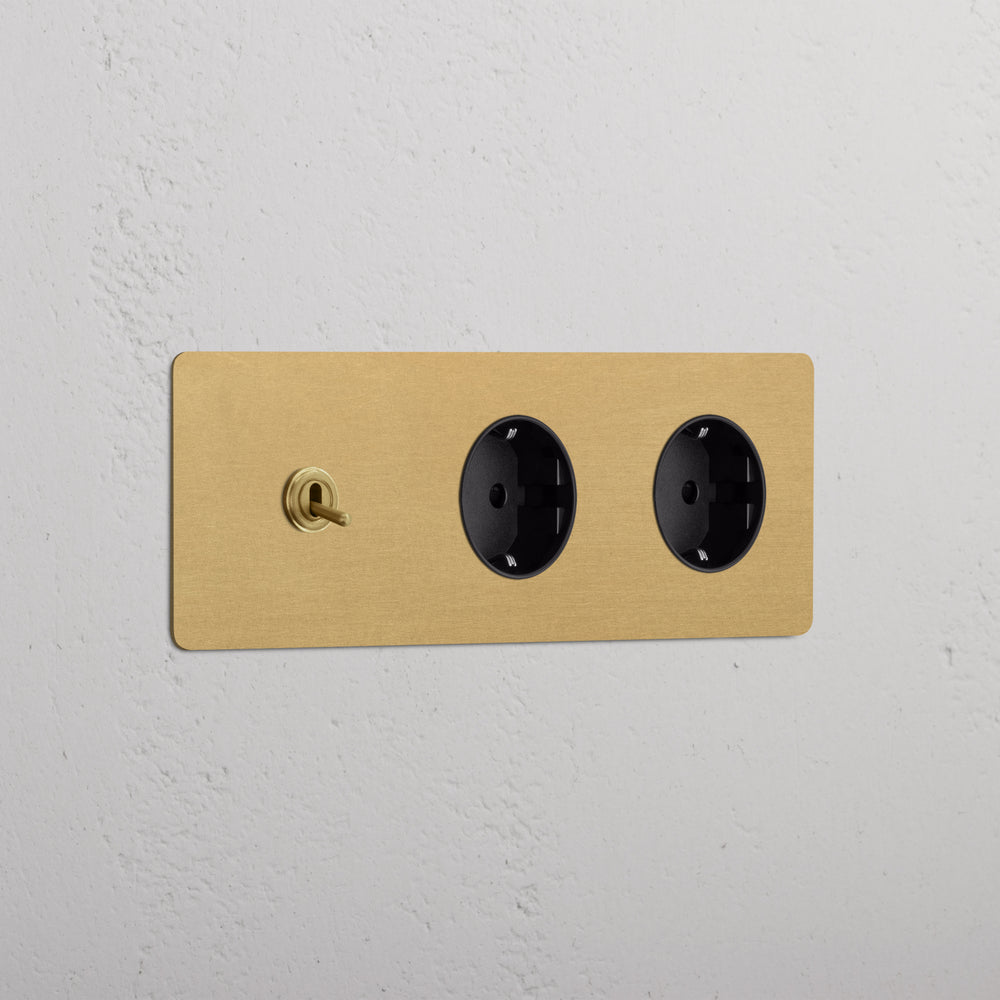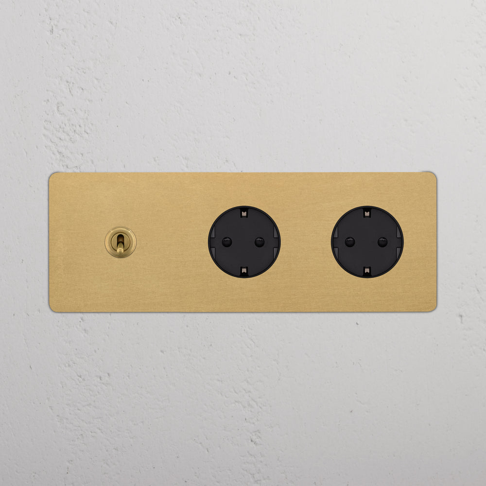 Dit product combineert een wissel-tuimelschakelaar met twee Schuko-stopcontacten op één drievoudige afdekplaat.