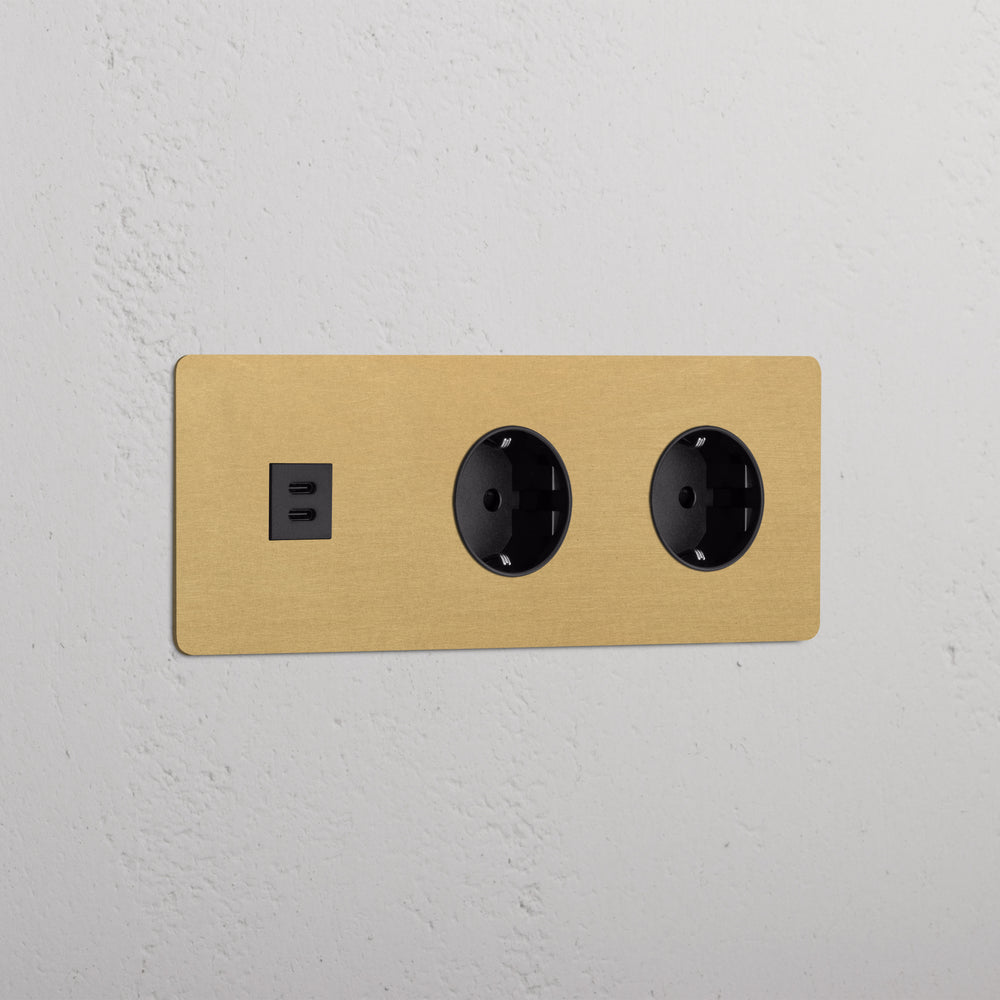 Dit product combineert een USB-C-voedingsmodule en twee Schuko-stopcontacten op één drievoudige afdekplaat.