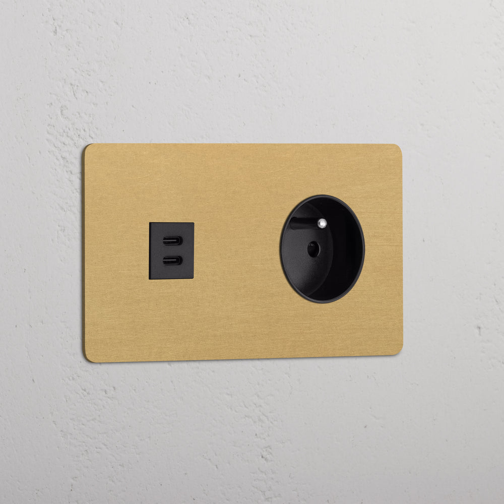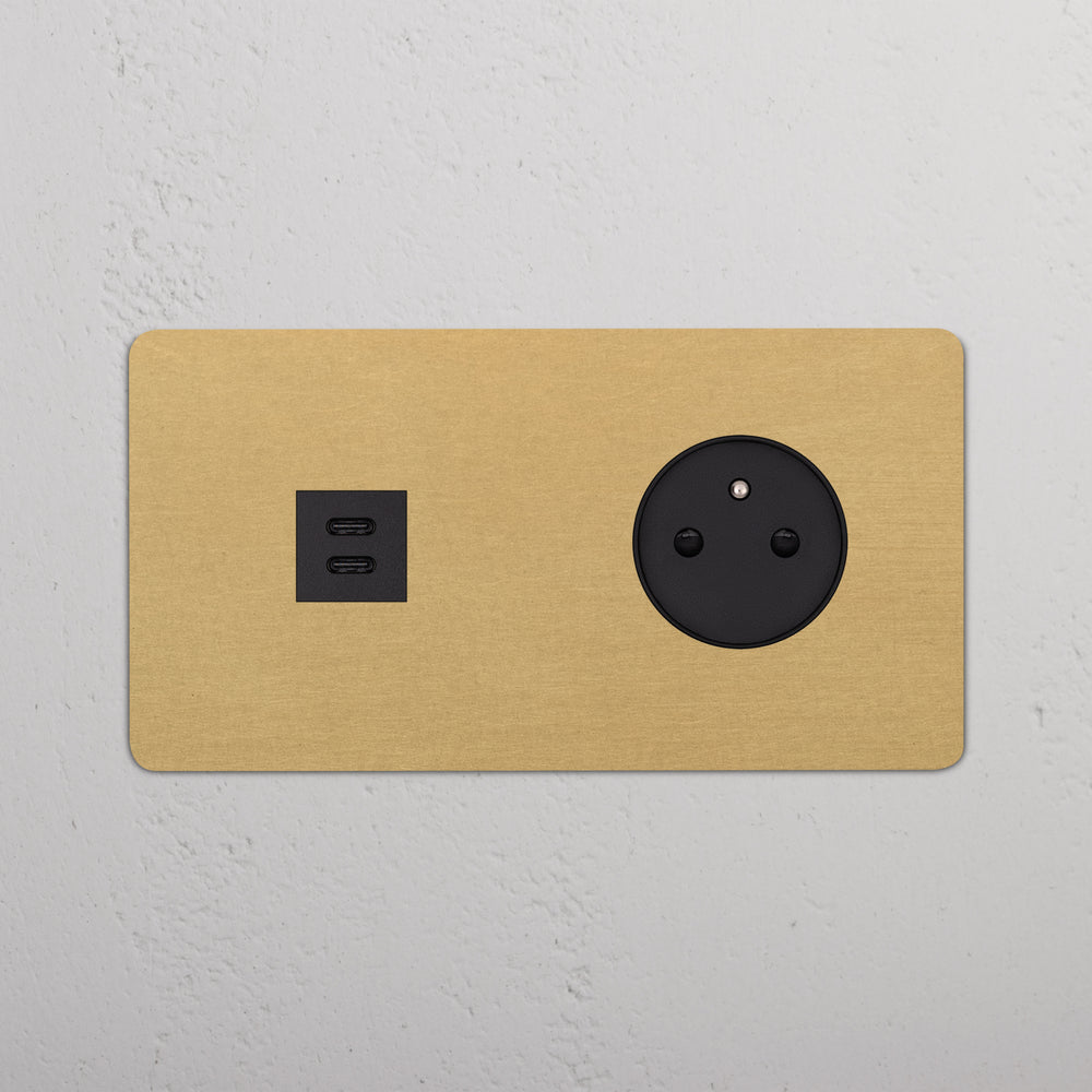 Dit product combineert een USB-C-voedingsmodule en een Frans/Belgisch stopcontact op één dubbele afdekplaat.