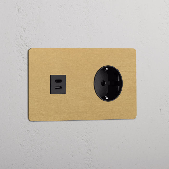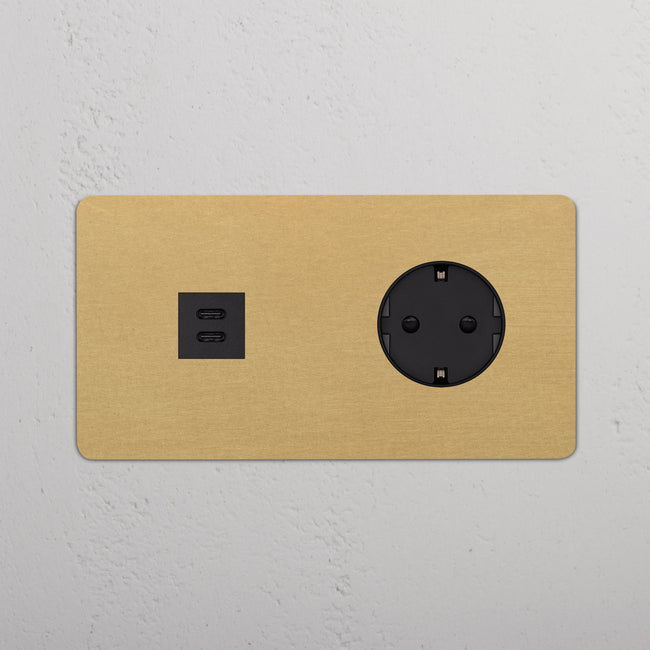 Dit product combineert een USB-C-voedingsmodule en een Schuko-stopcontact op één dubbele afdekplaat.
