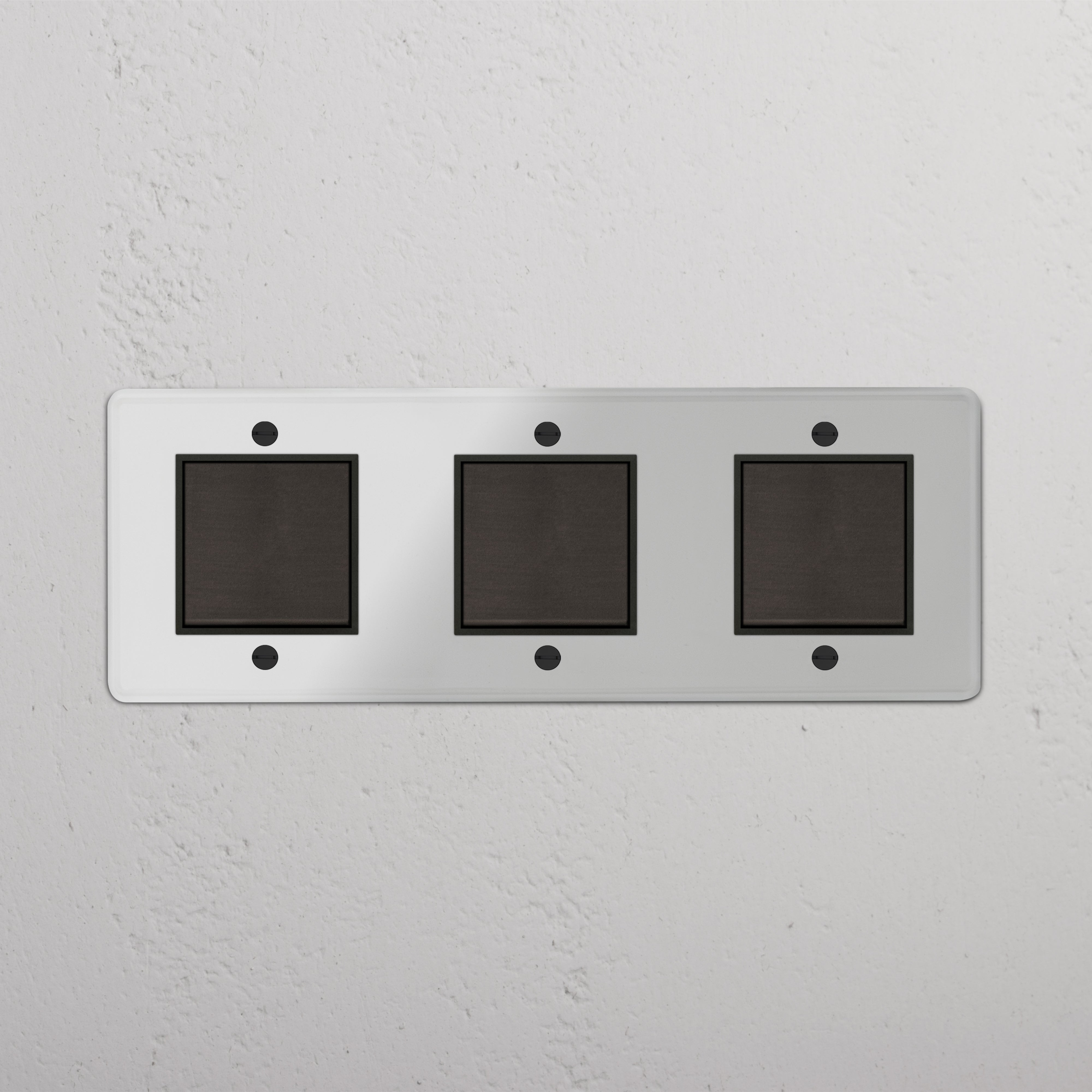 Onze transparante collectie is gemaakt van polycarbonaat, dat flexibeler en duurzamer is dan het gebruikelijke acryl. De wipschakelaars zijn gemaakt van massief messing met onze bronzen afwerking.