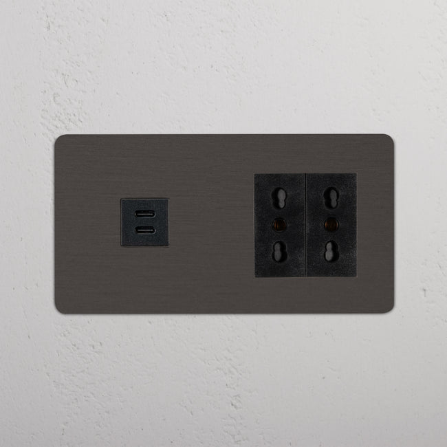 This double mixed socket combines a USB-C and two Bipasso sockets on one plate.
