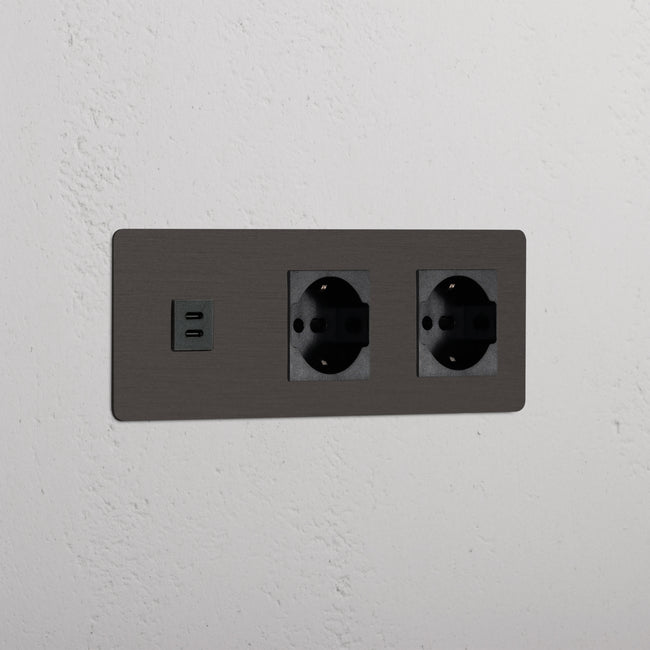 This triple mixed socket combines a USB-C and two Schuko/Bipasso sockets on one plate.