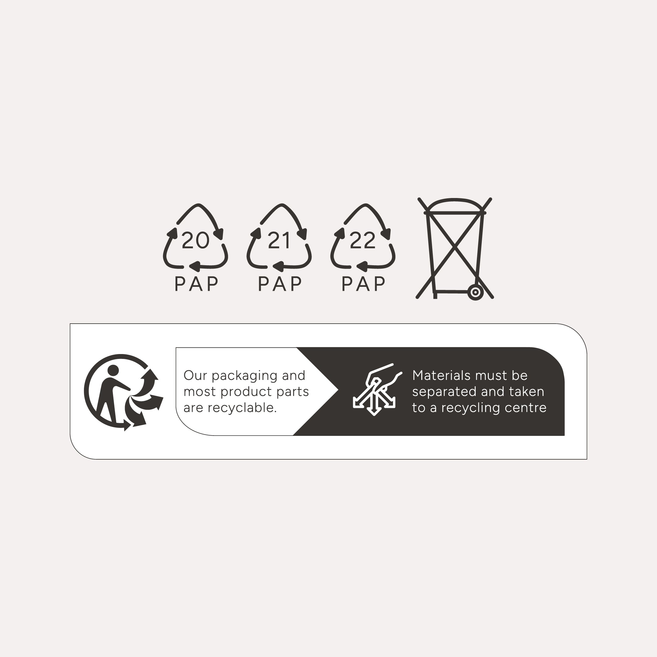 Recycling rules vary between countries, regions and areas. We encourage you to check with your local authority to find out how to correctly dispose of our recyclable packaging.